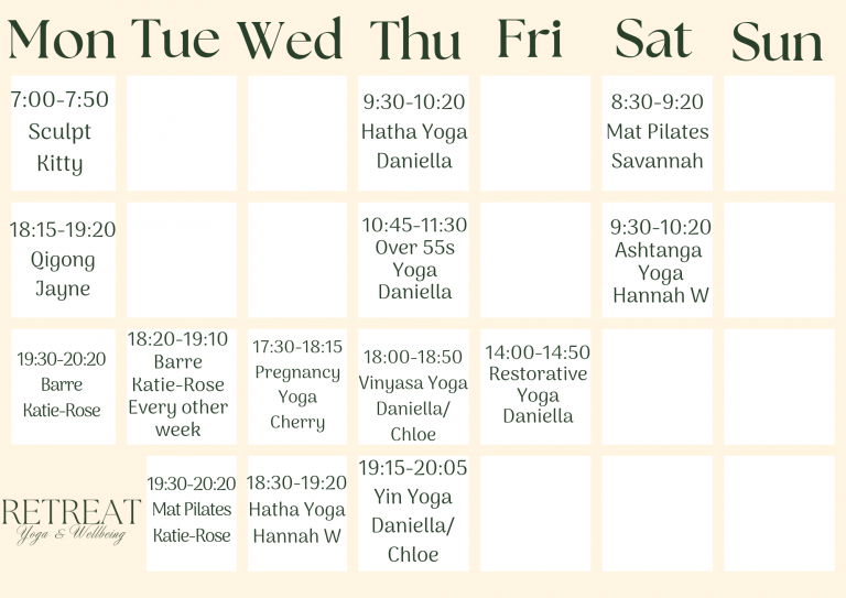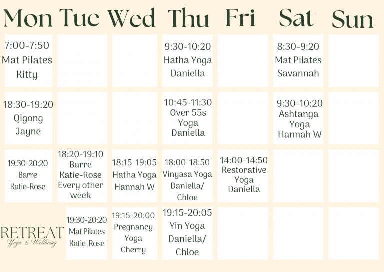 Please note, due to the different structure of our Over 55’s class, these classes are not bookable online – to express your interest in joining, email us at retreatwellbeing.co.uk and please note payment will be taken in person on arrival.